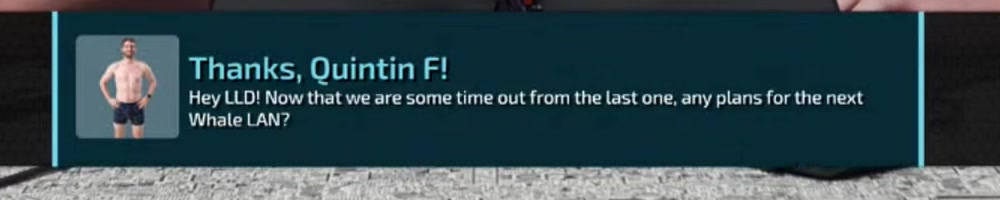 | Quintin F | message | Thanks, Quintin F! Hey LLD! Now that we are some time out from the last one, any plans for the next Whale LAN? | Timestamp | ![]() |